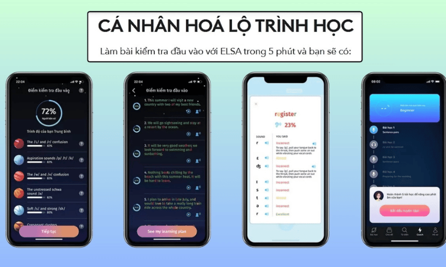 Điểm đặc biệt của ELSA Speak Pro nằm ở khả năng xây dựng lộ trình học cá nhân hoá dựa trên điểm mạnh – điểm yếu của người học. Bạn không cần mất thời gian chọn bài hay sắp xếp nội dung học, vì ELSA đã làm điều đó giúp bạn. Với hàng ngàn bài luyện tập mô phỏng các tình huống giao tiếp đời thực, ELSA Pro sẽ biến mỗi buổi học thành một trải nghiệm thực tế, giúp người học từng bước tự tin, lưu loát và chuẩn xác hơn trong mọi cuộc trò chuyện tiếng Anh.
